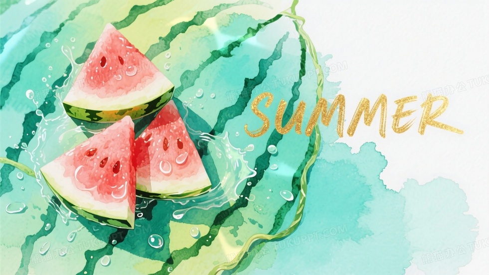 本作品内容为水彩晕染风格夏日海报, 格式为 jpg, 大小1 MB, 图片尺寸为1664 x 936, 作品中背景图片无需修改, 源文件无水印,可以直接使用, 欢迎使用熊猫办公。 如认为平台内容涉嫌侵权,可通过邮件:tousu@tukuppt.com提出书面通知,我们将及时处理。