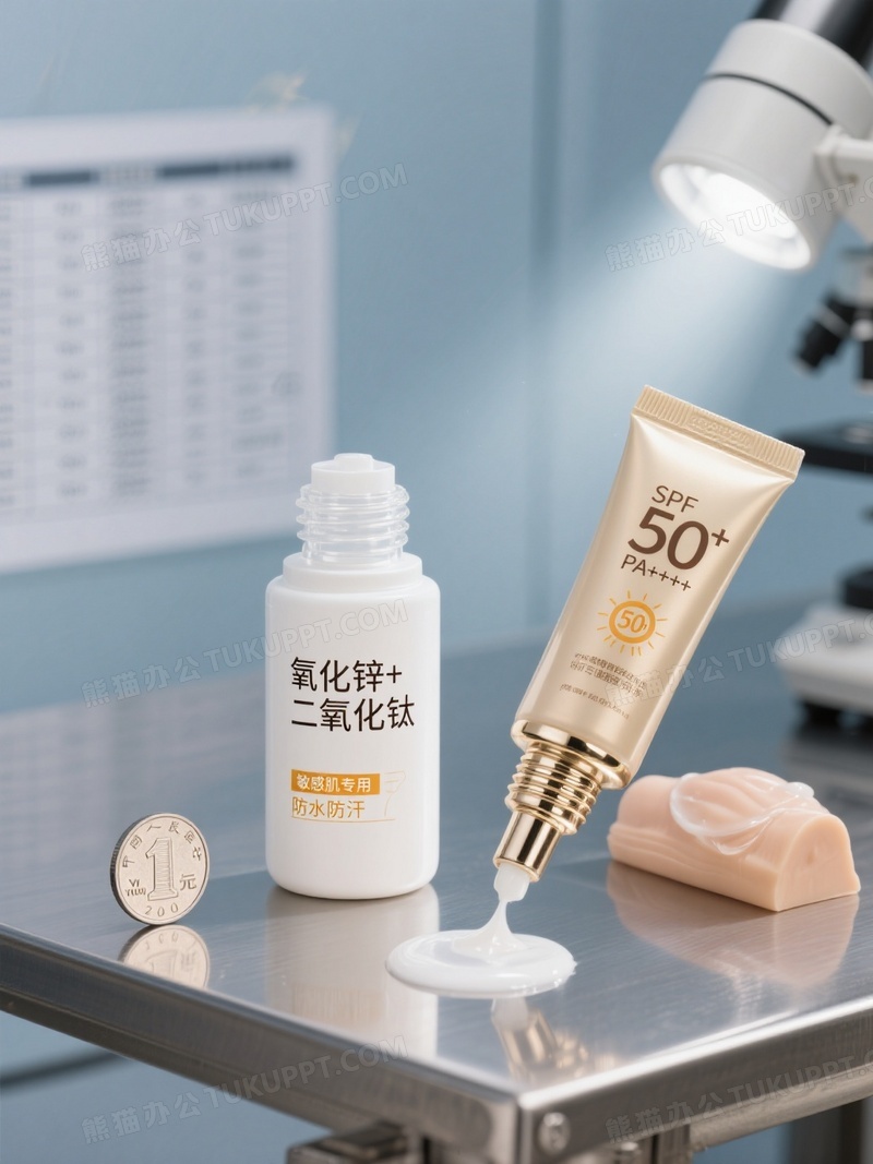 本作品内容为两种防晒产品并置于实验室级不锈钢台面, 格式为 jpg, 大小1 MB, 图片尺寸为1104 x 1472, 源文件无水印, 欢迎使用熊猫办公。 如认为平台内容涉嫌侵权,可通过邮件:tousu@tukuppt.com提出书面通知,我们将及时处理。