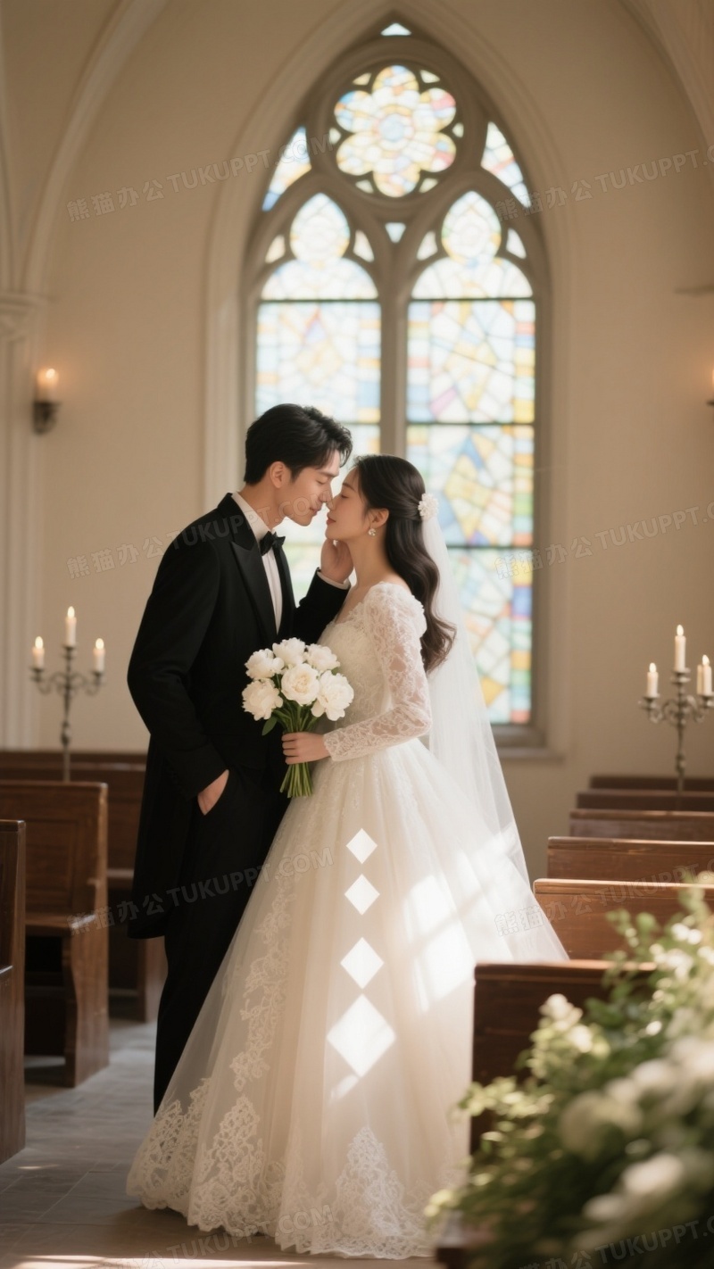 本作品内容为婚纱与黑色礼服的新人站在哥特式教堂彩窗前, 格式为 jpg, 大小1 MB, 图片尺寸为936 x 1664, 源文件无水印, 欢迎使用熊猫办公。 如认为平台内容涉嫌侵权,可通过邮件:tousu@tukuppt.com提出书面通知,我们将及时处理。