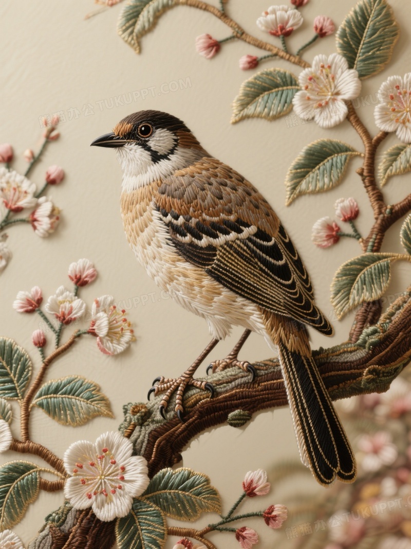本作品内容为一只鸟栖息在树枝上周围是精致的梅花花朵和叶子, 格式为 jpg, 大小1 MB, 图片尺寸为1104 x 1472, 源文件无水印, 欢迎使用熊猫办公。 如认为平台内容涉嫌侵权,可通过邮件:tousu@tukuppt.com提出书面通知,我们将及时处理。