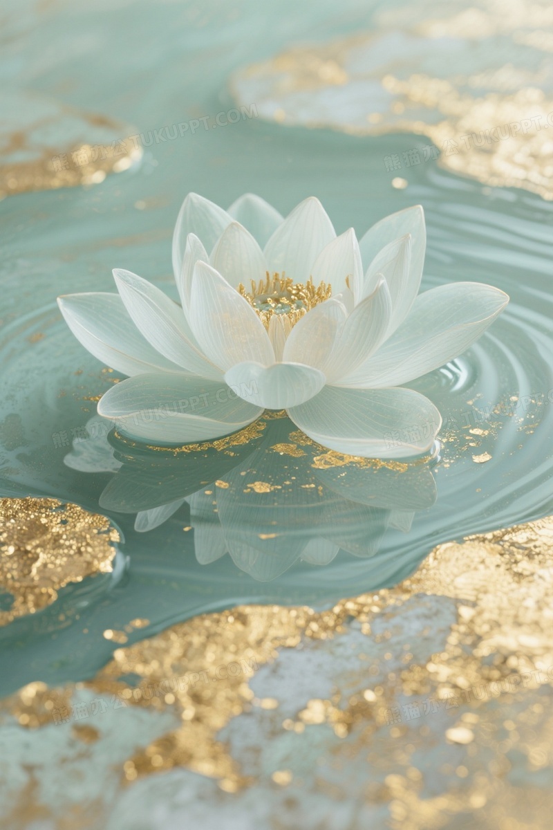 本作品内容为莲冷光薄纱般的唯美逼真的立体睡莲漂浮在金箔岩彩质感的水面上, 格式为 jpg, 大小1 MB, 图片尺寸为1056 x 1584, 源文件无水印, 欢迎使用熊猫办公。 如认为平台内容涉嫌侵权,可通过邮件:tousu@tukuppt.com提出书面通知,我们将及时处理。