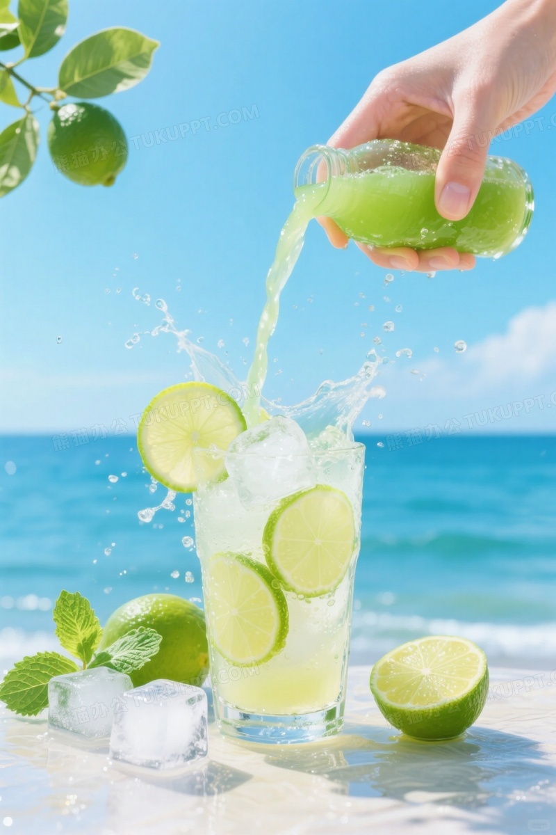 本作品内容为画面中一只手正将绿色的小青柠汁饮料倒入装有冰块和青柠片的玻璃杯中, 格式为 jpg, 大小1 MB, 图片尺寸为1056 x 1584, 源文件无水印, 欢迎使用熊猫办公。 如认为平台内容涉嫌侵权,可通过邮件:tousu@tukuppt.com提出书面通知,我们将及时处理。