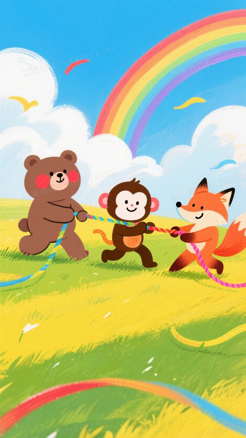 本作品内容为卡通风格小动物拔河插画, 格式为 jpg, 大小1 MB, 图片尺寸为936 x 1664, 源文件无水印, 欢迎使用熊猫办公。 如认为平台内容涉嫌侵权,可通过邮件:tousu@tukuppt.com提出书面通知,我们将及时处理。
