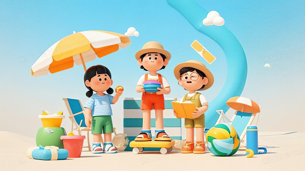本作品内容为沙滩海边玩耍夏天3D清凉夏季插画, 格式为 jpg, 大小4 MB, 图片尺寸为3072 x 1728, 源文件无水印, 欢迎使用熊猫办公。 如认为平台内容涉嫌侵权,可通过邮件:tousu@tukuppt.com提出书面通知,我们将及时处理。