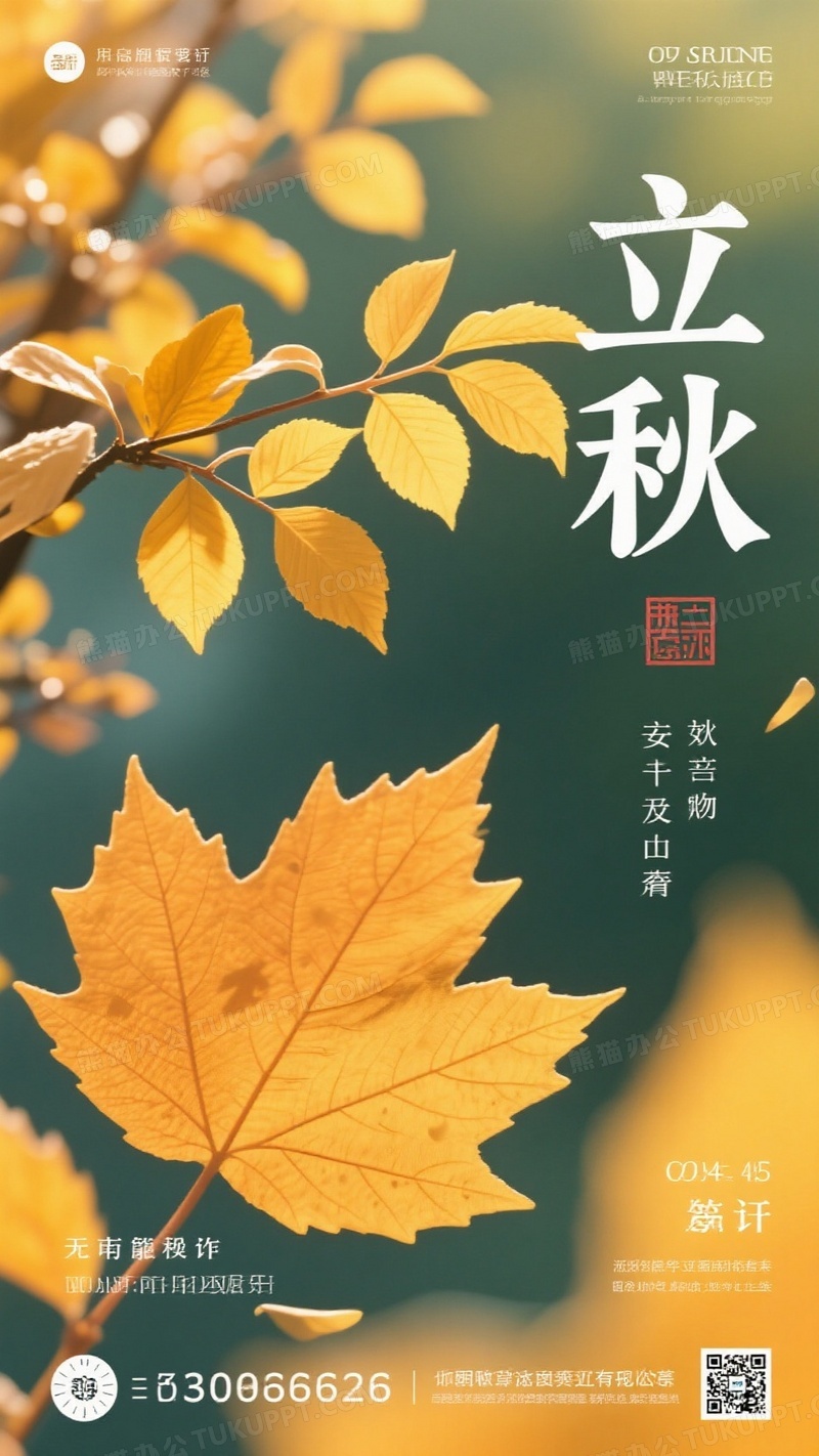 本作品内容为设计一张海报关于立秋, 格式为 jpg, 大小1 MB, 图片尺寸为936 x 1664, 源文件无水印, 欢迎使用熊猫办公。 如认为平台内容涉嫌侵权,可通过邮件:tousu@tukuppt.com提出书面通知,我们将及时处理。
