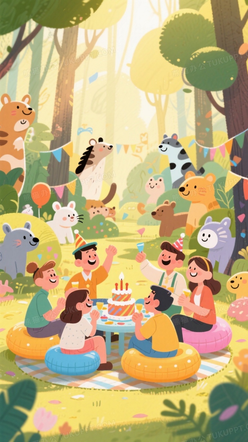 本作品内容为卡通插画风格的高清生日派对场景, 格式为 jpg, 大小1 MB, 图片尺寸为936 x 1664, 源文件无水印, 欢迎使用熊猫办公。 如认为平台内容涉嫌侵权,可通过邮件:tousu@tukuppt.com提出书面通知,我们将及时处理。