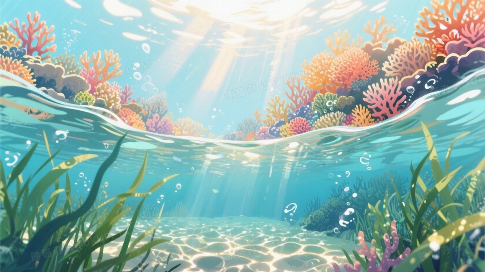 本作品内容为从水下往上看的美丽风景插画, 格式为 jpg, 大小1 MB, 图片尺寸为1664 x 936, 源文件无水印, 欢迎使用熊猫办公。 如认为平台内容涉嫌侵权,可通过邮件:tousu@tukuppt.com提出书面通知,我们将及时处理。