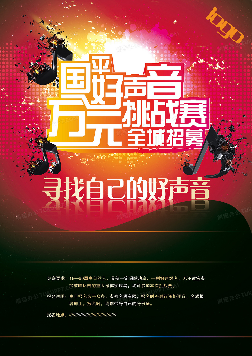 本作品内容为ktv好声音比赛海报背景, 格式为 psd, 图片尺寸为3508 x 4961, 作品中背景图片无需修改, 源文件无水印,可以直接使用, 欢迎使用熊猫办公。 如认为平台内容涉嫌侵权,可通过邮件:tousu@tukuppt.com提出书面通知,我们将及时处理。