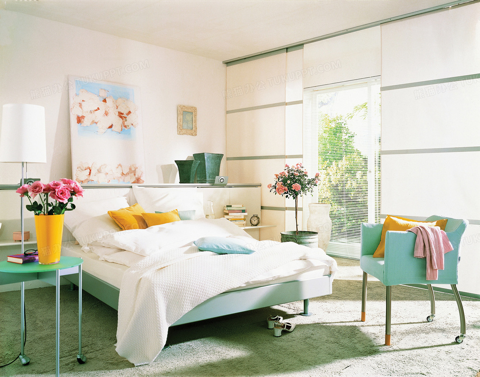本作品内容为清新卧室田园风格装修图片素材, 格式为 jpg, 图片尺寸为3445 x 2707, 作品中背景图片无需修改, 源文件无水印,可以直接使用, 欢迎使用熊猫办公。 如认为平台内容涉嫌侵权,可通过邮件:tousu@tukuppt.com提出书面通知,我们将及时处理。