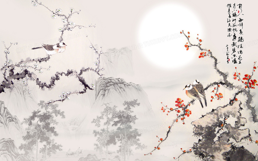 本作品内容为中国画, 格式为 jpg, 图片尺寸为9071 x 5669, 作品中背景图片无需修改, 源文件无水印,可以直接使用, 欢迎使用熊猫办公。 如认为平台内容涉嫌侵权,可通过邮件:tousu@tukuppt.com提出书面通知,我们将及时处理。