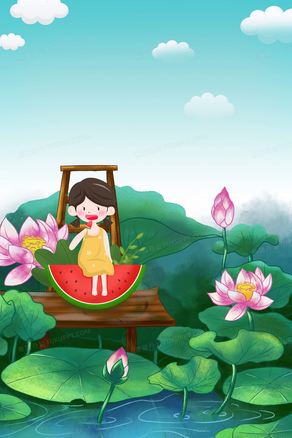 本作品内容为夏日荷花池塘吃西瓜背景, 格式为 psd, 大小53 MB, 图片尺寸为3543 x 5315, 作品中背景图片无需修改, 源文件无水印,可以直接使用, 欢迎使用熊猫办公。 如认为平台内容涉嫌侵权,可通过邮件:tousu@tukuppt.com提出书面通知,我们将及时处理。