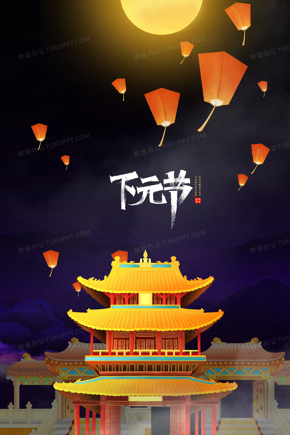 本作品内容为下元节祭祖传统文化节日背景, 格式为 psd, 大小157 MB, 图片尺寸为3543 x 5315, 作品中背景图片无需修改, 源文件无水印,可以直接使用, 欢迎使用熊猫办公。 如认为平台内容涉嫌侵权,可通过邮件:tousu@tukuppt.com提出书面通知,我们将及时处理。