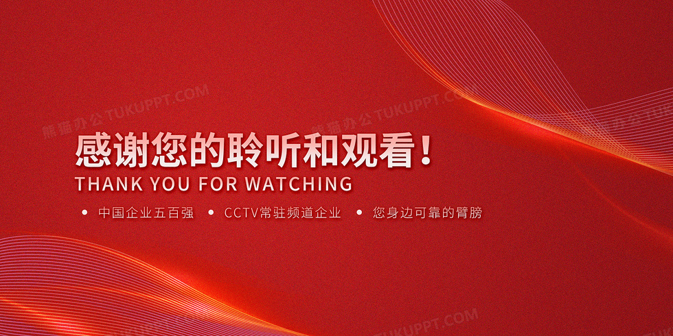 本作品内容为红色大气商务PPT结尾感谢背景, 格式为 psd, 大小56 MB, 图片尺寸为4724 x 2362, 作品中背景图片无需修改, 源文件无水印,可以直接使用, 欢迎使用熊猫办公。 如认为平台内容涉嫌侵权,可通过邮件:tousu@tukuppt.com提出书面通知,我们将及时处理。