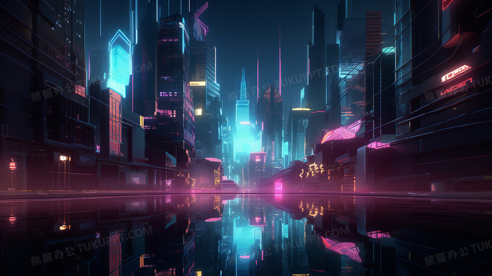 本作品内容为赛博朋克风格创意霓虹街景, 格式为 jpg, 大小3 MB, 图片尺寸为2912 x 1632, 源文件无水印, 欢迎使用熊猫办公。 如认为平台内容涉嫌侵权,可通过邮件:tousu@tukuppt.com提出书面通知,我们将及时处理。