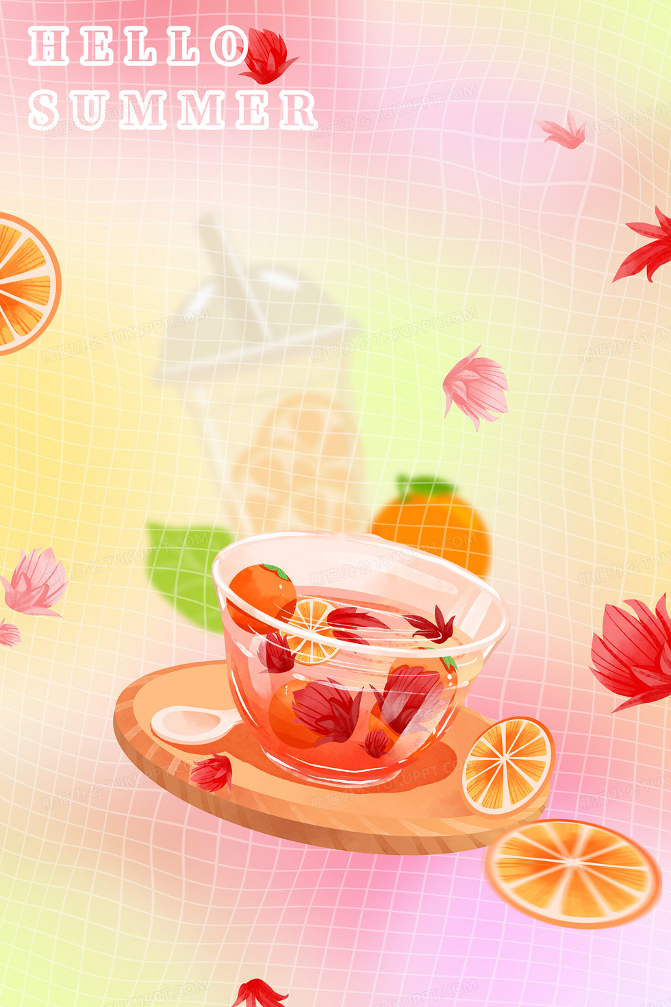 本作品内容为洛神花金桔茶网格背景, 格式为 psd, 大小26 MB, 图片尺寸为3543 x 5314, 作品中背景图片无需修改, 源文件无水印,可以直接使用, 欢迎使用熊猫办公。 如认为平台内容涉嫌侵权,可通过邮件:tousu@tukuppt.com提出书面通知,我们将及时处理。