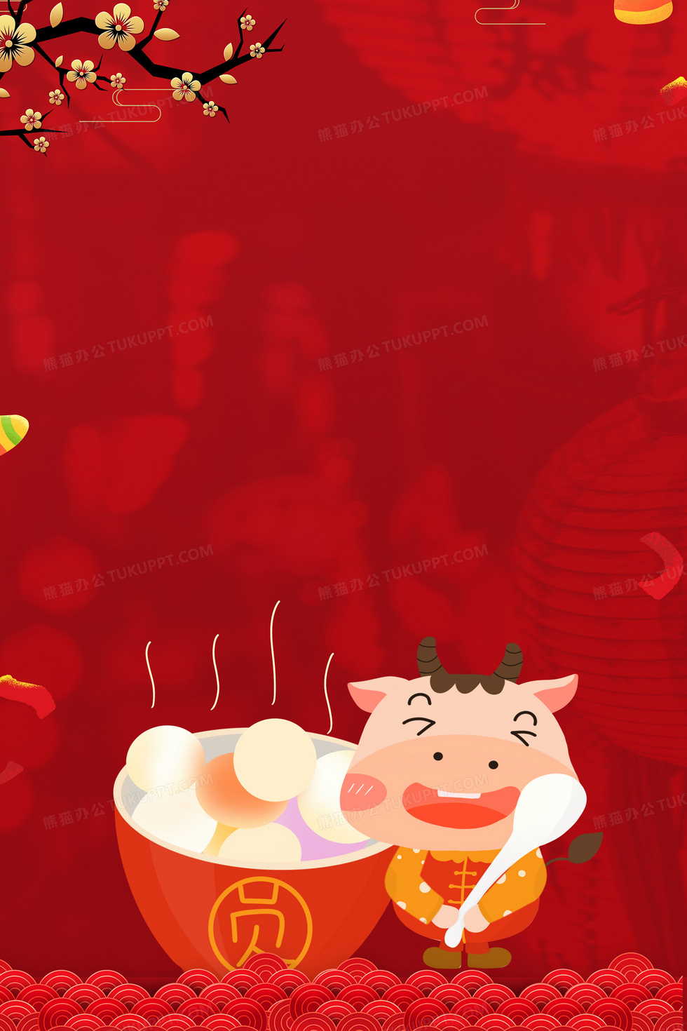 本作品内容为创意中国风喜庆元宵节吃汤圆背景, 格式为 psd, 大小135 MB, 图片尺寸为3543 x 5315, 作品中背景图片无需修改, 源文件无水印,可以直接使用, 欢迎使用熊猫办公。 如认为平台内容涉嫌侵权,可通过邮件:tousu@tukuppt.com提出书面通知,我们将及时处理。