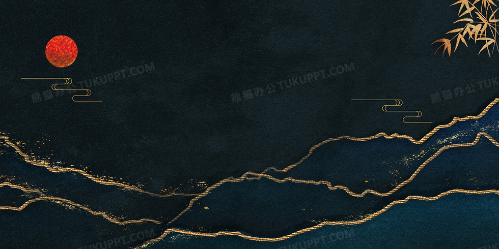 本作品内容为鎏金山水意境新中式雅致中国风背景, 格式为 psd, 大小126 MB, 图片尺寸为4724 x 2362, 作品中背景图片无需修改, 源文件无水印,可以直接使用, 欢迎使用熊猫办公。 如认为平台内容涉嫌侵权,可通过邮件:tousu@tukuppt.com提出书面通知,我们将及时处理。