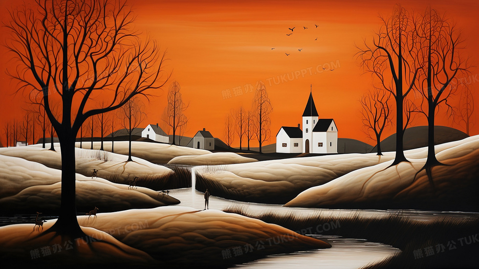 本作品内容为黄昏山林雪地上的一座教堂插画, 格式为 jpg, 大小3 MB, 图片尺寸为2912 x 1632, 源文件无水印, 欢迎使用熊猫办公。 如认为平台内容涉嫌侵权,可通过邮件:tousu@tukuppt.com提出书面通知,我们将及时处理。