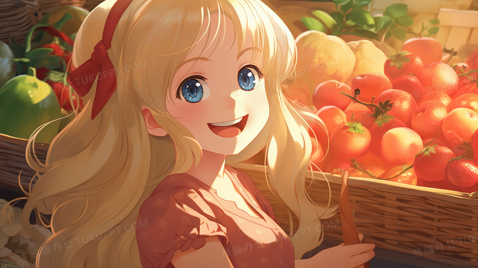本作品内容为一个金发的小女孩快乐地选购水果插画, 格式为 jpg, 大小3 MB, 图片尺寸为2912 x 1632, 源文件无水印, 欢迎使用熊猫办公。 如认为平台内容涉嫌侵权,可通过邮件:tousu@tukuppt.com提出书面通知,我们将及时处理。