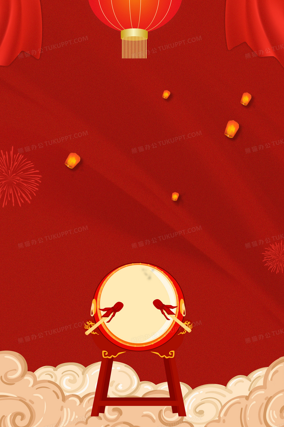 本作品内容为红色喜庆新年打鼓合成背景, 格式为 psd, 大小102 MB, 图片尺寸为3543 x 5314, 作品中背景图片无需修改, 源文件无水印,可以直接使用, 欢迎使用熊猫办公。 如认为平台内容涉嫌侵权,可通过邮件:tousu@tukuppt.com提出书面通知,我们将及时处理。