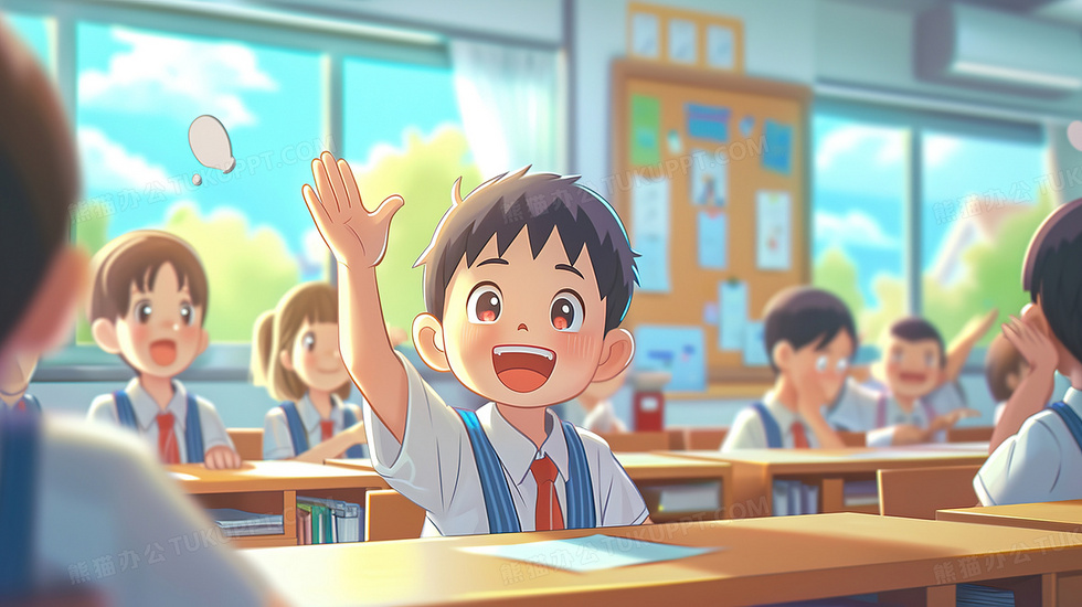 本作品内容为新学期第一课课堂举手男孩插画, 格式为 jpg, 大小3 MB, 图片尺寸为2912 x 1632, 源文件无水印, 欢迎使用熊猫办公。 如认为平台内容涉嫌侵权,可通过邮件:tousu@tukuppt.com提出书面通知,我们将及时处理。