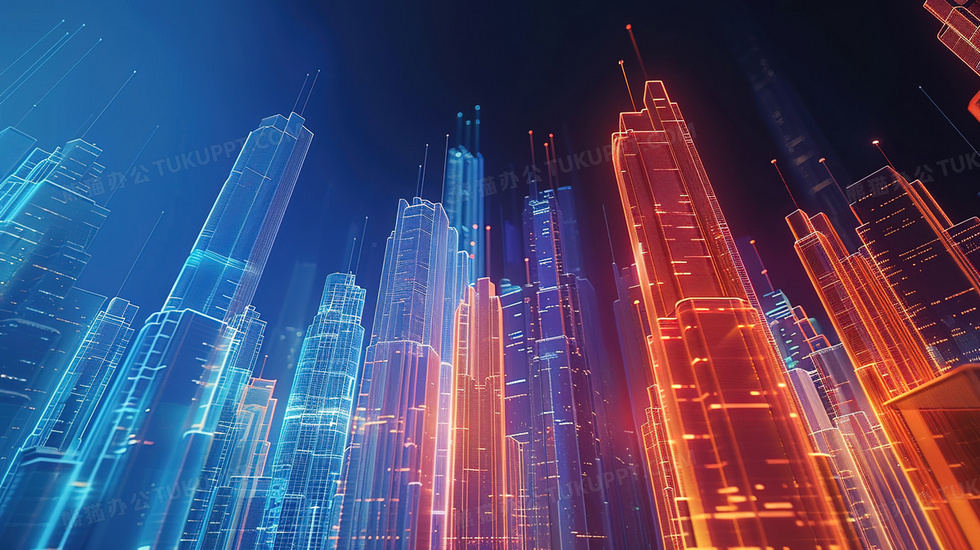 本作品内容为科技感城市建筑高楼插画, 格式为 jpg, 大小3 MB, 图片尺寸为2912 x 1632, 源文件无水印, 欢迎使用熊猫办公。 如认为平台内容涉嫌侵权,可通过邮件:tousu@tukuppt.com提出书面通知,我们将及时处理。