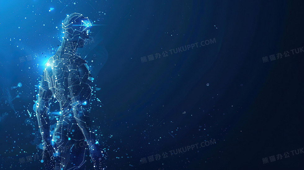 本作品内容为科技蓝色机器人背景, 格式为 jpg, 大小3 MB, 图片尺寸为2912 x 1632, 作品中背景图片无需修改, 源文件无水印,可以直接使用, 欢迎使用熊猫办公。 如认为平台内容涉嫌侵权,可通过邮件:tousu@tukuppt.com提出书面通知,我们将及时处理。