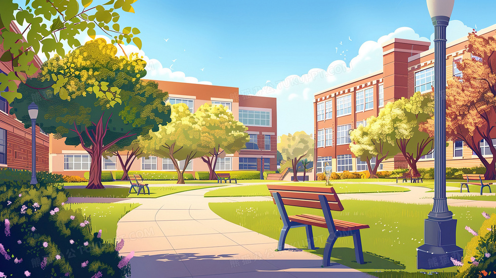 本作品内容为蓝天白云校园场景插画, 格式为 jpg, 大小4 MB, 图片尺寸为2912 x 1632, 源文件无水印, 欢迎使用熊猫办公。 如认为平台内容涉嫌侵权,可通过邮件:tousu@tukuppt.com提出书面通知,我们将及时处理。