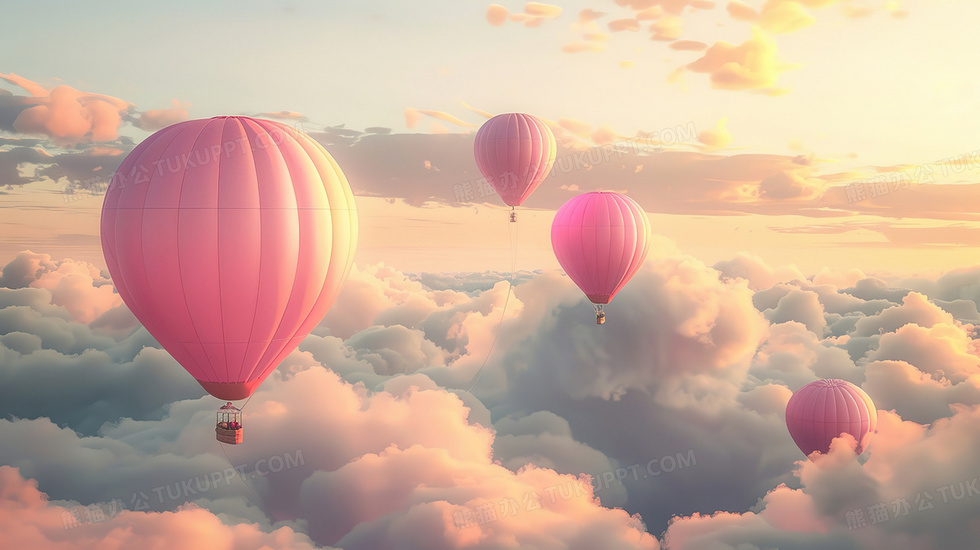 本作品内容为粉色云层里的热气球插画, 格式为 jpg, 大小2 MB, 图片尺寸为2912 x 1632, 源文件无水印, 欢迎使用熊猫办公。 如认为平台内容涉嫌侵权,可通过邮件:tousu@tukuppt.com提出书面通知,我们将及时处理。