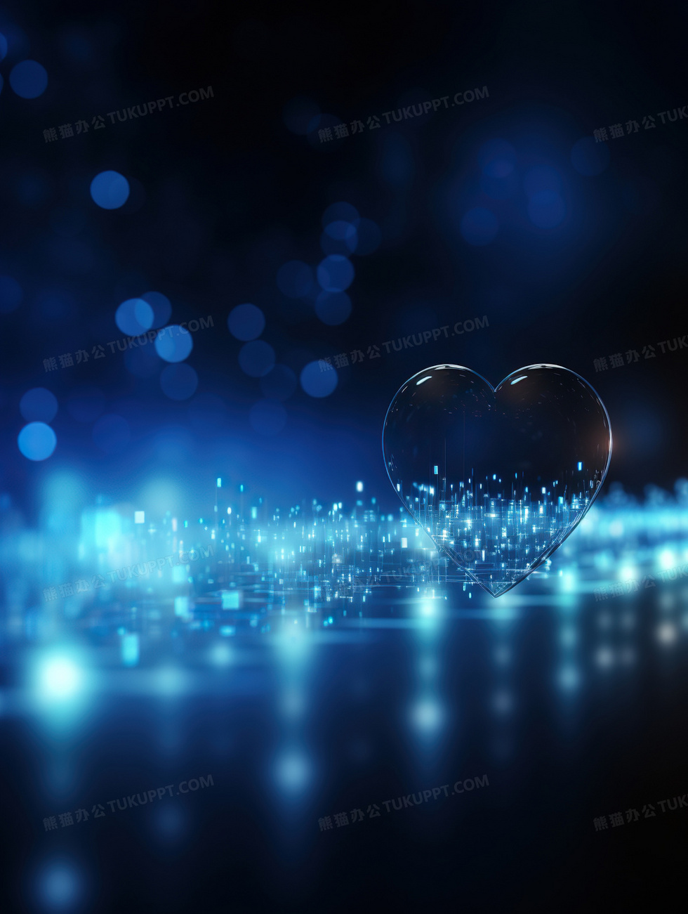 本作品内容为蓝色科技风格爱心背景, 格式为 jpg, 大小2 MB, 图片尺寸为1856 x 2464, 作品中背景图片无需修改, 源文件无水印,可以直接使用, 欢迎使用熊猫办公。 如认为平台内容涉嫌侵权,可通过邮件:tousu@tukuppt.com提出书面通知,我们将及时处理。