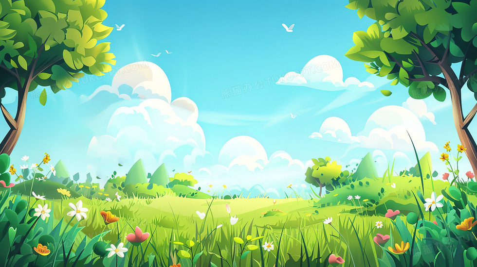 本作品内容为卡通风唯美春天花草背景, 格式为 jpg, 大小3 MB, 图片尺寸为2912 x 1632, 作品中背景图片无需修改, 源文件无水印,可以直接使用, 欢迎使用熊猫办公。 如认为平台内容涉嫌侵权,可通过邮件:tousu@tukuppt.com提出书面通知,我们将及时处理。