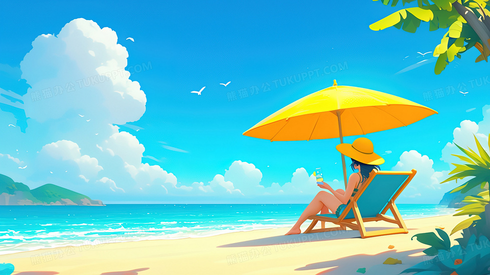 本作品内容为夏季海边度假的女孩插画, 格式为 jpg, 大小3 MB, 图片尺寸为2912 x 1632, 源文件无水印, 欢迎使用熊猫办公。 如认为平台内容涉嫌侵权,可通过邮件:tousu@tukuppt.com提出书面通知,我们将及时处理。
