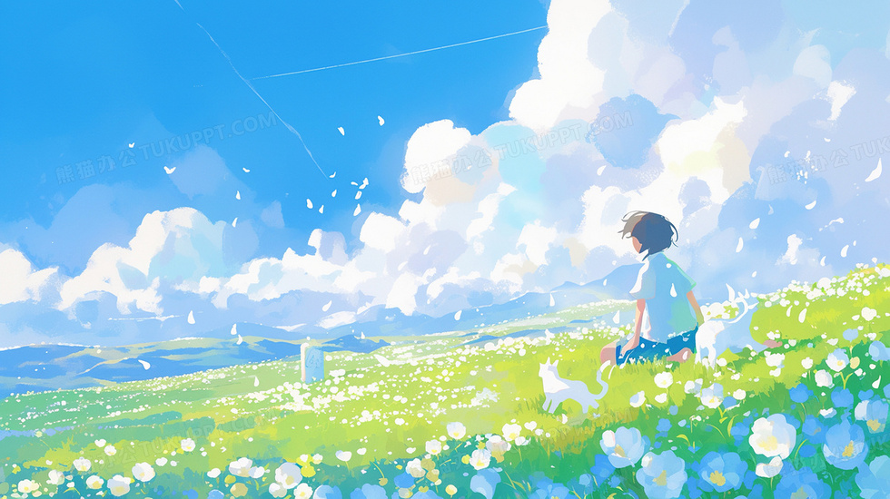 本作品内容为蓝天白云花海少年插画, 格式为 jpg, 大小3 MB, 图片尺寸为2912 x 1632, 源文件无水印, 欢迎使用熊猫办公。 如认为平台内容涉嫌侵权,可通过邮件:tousu@tukuppt.com提出书面通知,我们将及时处理。