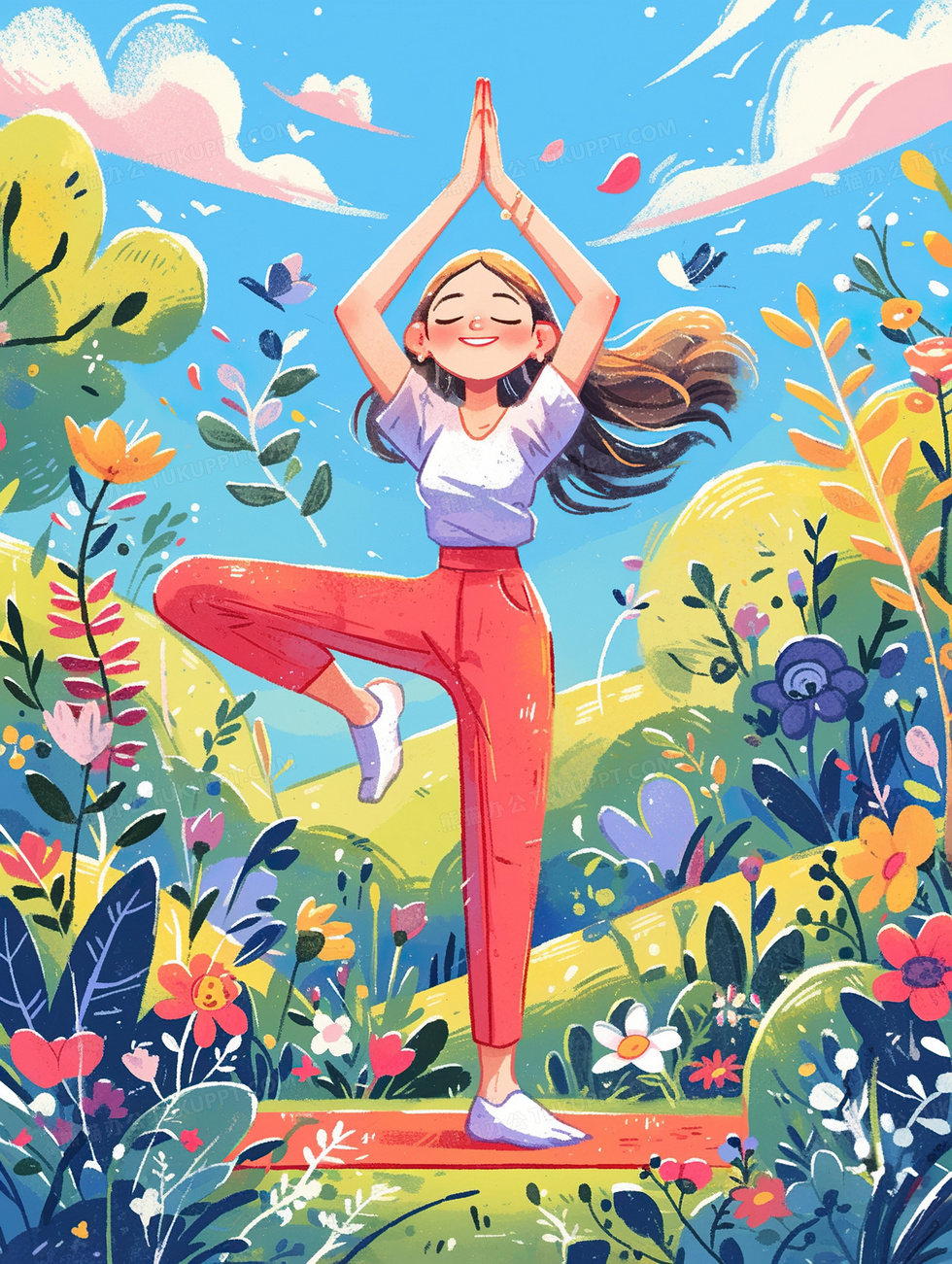 本作品内容为蓝天白云在花丛中做瑜伽插画, 格式为 jpg, 大小4 MB, 图片尺寸为1856 x 2464, 源文件无水印, 欢迎使用熊猫办公。 如认为平台内容涉嫌侵权,可通过邮件:tousu@tukuppt.com提出书面通知,我们将及时处理。