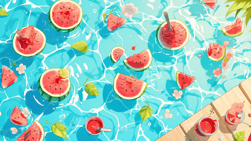 本作品内容为夏日清凉西瓜冰块插画, 格式为 jpg, 大小3 MB, 图片尺寸为2912 x 1632, 源文件无水印, 欢迎使用熊猫办公。 如认为平台内容涉嫌侵权,可通过邮件:tousu@tukuppt.com提出书面通知,我们将及时处理。