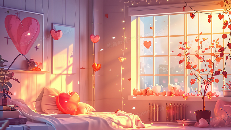 本作品内容为房屋里的情人节室内设计装饰插画, 格式为 jpg, 大小3 MB, 图片尺寸为2912 x 1632, 源文件无水印, 欢迎使用熊猫办公。 如认为平台内容涉嫌侵权,可通过邮件:tousu@tukuppt.com提出书面通知,我们将及时处理。