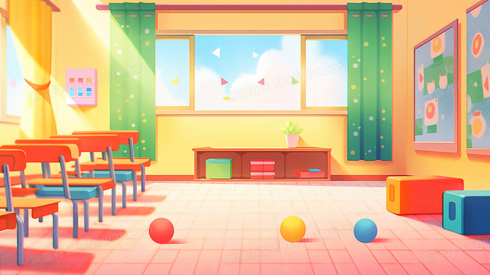 本作品内容为幼儿园教室场景插画, 格式为 jpg, 大小2 MB, 图片尺寸为2912 x 1632, 源文件无水印, 欢迎使用熊猫办公。 如认为平台内容涉嫌侵权,可通过邮件:tousu@tukuppt.com提出书面通知,我们将及时处理。