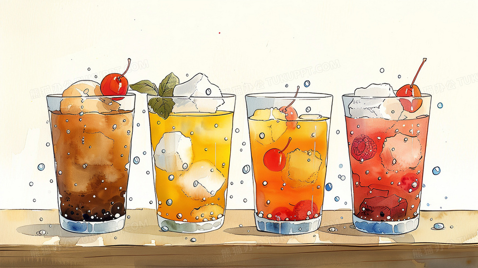 本作品内容为手绘夏日清凉冰镇饮料插画, 格式为 jpg, 大小3 MB, 图片尺寸为2912 x 1632, 源文件无水印, 欢迎使用熊猫办公。 如认为平台内容涉嫌侵权,可通过邮件:tousu@tukuppt.com提出书面通知,我们将及时处理。