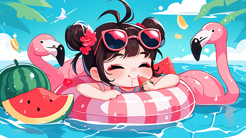 本作品内容为炎热夏季火烈鸟泳圈女孩插画, 格式为 jpg, 大小3 MB, 图片尺寸为2912 x 1632, 源文件无水印, 欢迎使用熊猫办公。 如认为平台内容涉嫌侵权,可通过邮件:tousu@tukuppt.com提出书面通知,我们将及时处理。