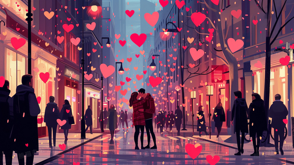520街上的情侣爱心插画