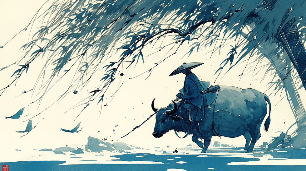 首页 > 插画 > 科技艺术 > 水彩手绘 > 清明放牛戴斗笠插画
