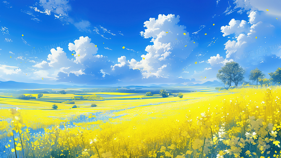 本作品内容为唯美清新春天油菜花田插画, 格式为 jpg, 大小4 MB, 图片尺寸为2912 x 1632, 源文件无水印, 欢迎使用熊猫办公。 如认为平台内容涉嫌侵权,可通过邮件:tousu@tukuppt.com提出书面通知,我们将及时处理。