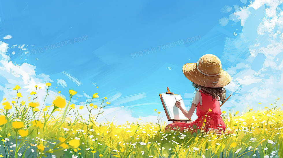本作品内容为唯美清新春天油菜花田插画, 格式为 jpg, 大小3 MB, 图片尺寸为2912 x 1632, 源文件无水印, 欢迎使用熊猫办公。 如认为平台内容涉嫌侵权,可通过邮件:tousu@tukuppt.com提出书面通知,我们将及时处理。