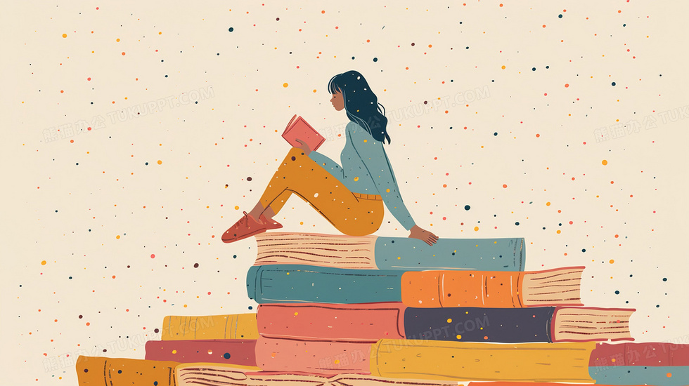 本作品内容为矢量扁平坐在书本上看书的女孩插画, 格式为 jpg, 大小2 MB, 图片尺寸为2912 x 1632, 源文件无水印, 欢迎使用熊猫办公。 如认为平台内容涉嫌侵权,可通过邮件:tousu@tukuppt.com提出书面通知,我们将及时处理。