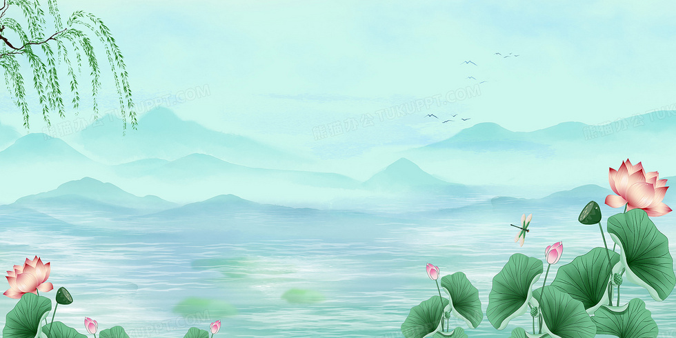 本作品内容为中国风清新荷塘合成背景, 格式为 psd, 大小57 MB, 图片尺寸为4724 x 2362, 作品中背景图片无需修改, 源文件无水印,可以直接使用, 欢迎使用熊猫办公。 如认为平台内容涉嫌侵权,可通过邮件:tousu@tukuppt.com提出书面通知,我们将及时处理。