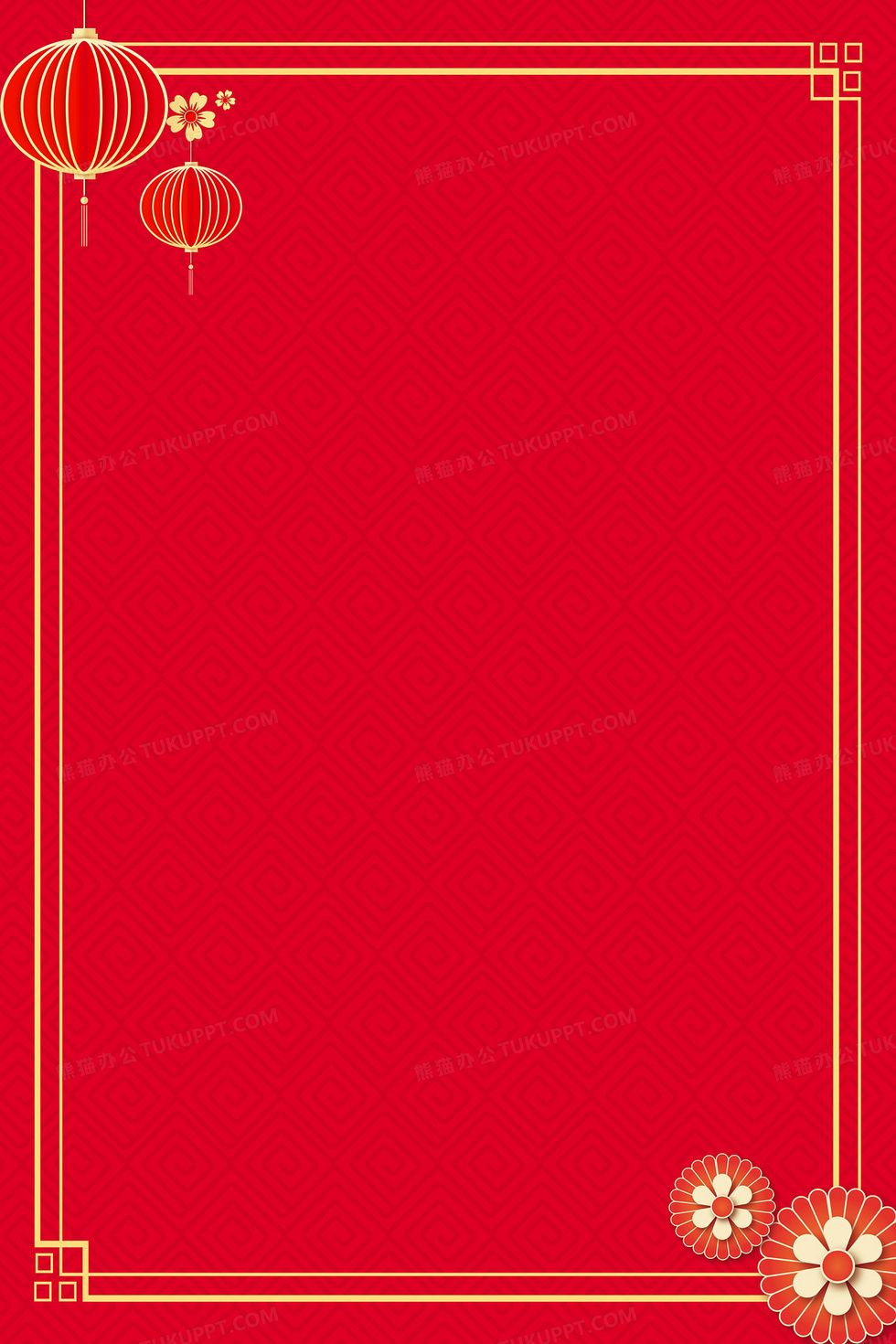 本作品内容为红色中国风灯笼边框主题背景, 格式为 psd, 大小18 MB, 图片尺寸为3543 x 5314, 作品中背景图片无需修改, 源文件无水印,可以直接使用, 欢迎使用熊猫办公。 如认为平台内容涉嫌侵权,可通过邮件:tousu@tukuppt.com提出书面通知,我们将及时处理。