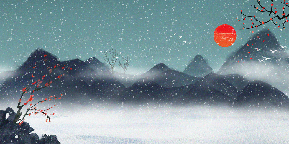 本作品内容为中国水墨风冬天景色, 格式为 psd, 大小122 MB, 图片尺寸为4722 x 2361, 作品中背景图片无需修改, 源文件无水印,可以直接使用, 欢迎使用熊猫办公。 如认为平台内容涉嫌侵权,可通过邮件:tousu@tukuppt.com提出书面通知,我们将及时处理。