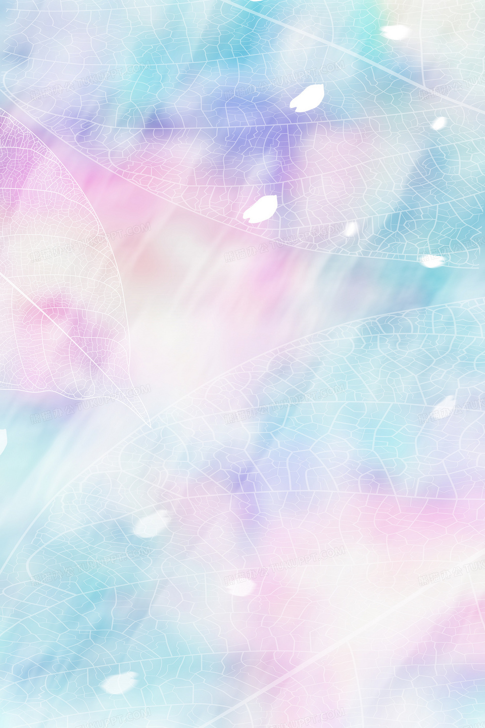 本作品内容为渐变植物底纹花瓣纹理背景, 格式为 psd, 大小27 MB, 图片尺寸为3543 x 5315, 作品中背景图片无需修改, 源文件无水印,可以直接使用, 欢迎使用熊猫办公。 如认为平台内容涉嫌侵权,可通过邮件:tousu@tukuppt.com提出书面通知,我们将及时处理。