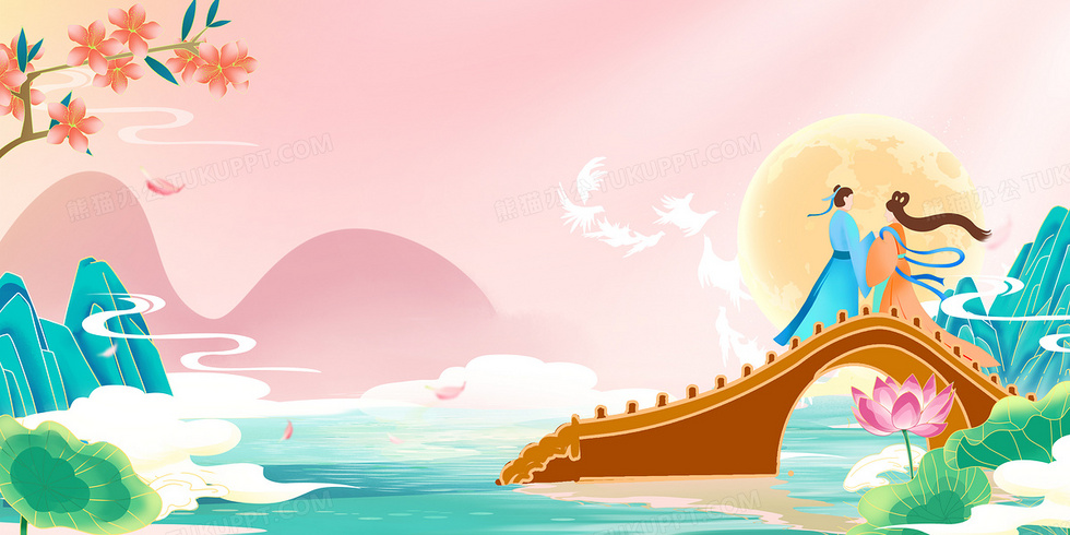 本作品内容为七夕情人节国潮中国风鹊桥会背景, 格式为 psd, 大小38 MB, 图片尺寸为4724 x 2362, 作品中背景图片无需修改, 源文件无水印,可以直接使用, 欢迎使用熊猫办公。 如认为平台内容涉嫌侵权,可通过邮件:tousu@tukuppt.com提出书面通知,我们将及时处理。