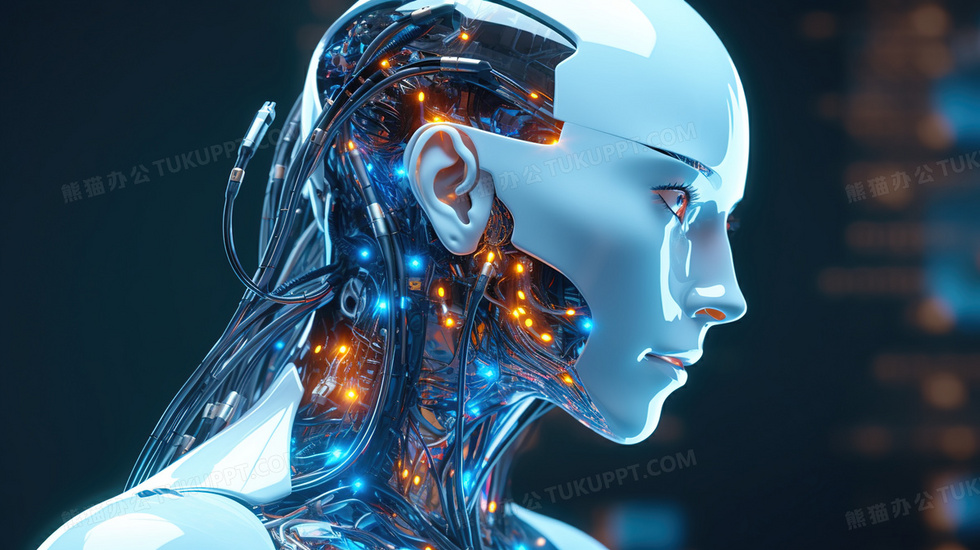 本作品内容为创意科技感人工智能机器人, 格式为 jpg, 大小6 MB, 图片尺寸为2912 x 1632, 源文件无水印, 欢迎使用熊猫办公。 如认为平台内容涉嫌侵权,可通过邮件:tousu@tukuppt.com提出书面通知,我们将及时处理。